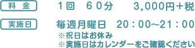 予約状況や症状などにより、セッション日時をご相談して決めさせていただきます。